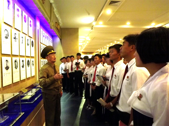 Hier ist eine Aufzeichnung des Helden der DVRK, Kim Sung Un, Führer im Museum über den Sieg im Vaterländischen Befreiungskrieg.