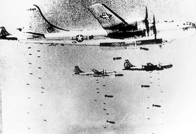 Von Kriegsanfang an wurden diese Bombardements noch wie besessener, nachdem Clark, Oberbefehlshaber der US-amerikanischen Streitmacht im Fernost, seinen so genannten Schlagplan veröffentlichte, der zum Ziel hatte, 78 Städte unserer Republik „auf dem Atlas völlig zu vernichten“. Allein im Jahr 1952 warfen die USA-Imperialisten auf die Stadt Pyongyang, die damals über eine Fläche von 52 km2 verfügte, 1000 Bomben pro 1 km2 ab und verwandelten sie in einen Aschenhaufen. Infolge von Bombardements und Kanonieren auf dem Boden und See wurden im 3-jährigen Krieg mehr als 448 000-t-Bomben abgeworfen. Als Ergebnis wurden über 8700 Betriebe und Werkstätten, mehr als 60 000 Wohnhäuser, über 260 Theater und Kinos und tausende Kultur-Hygieneneinrichtungen zerstört.