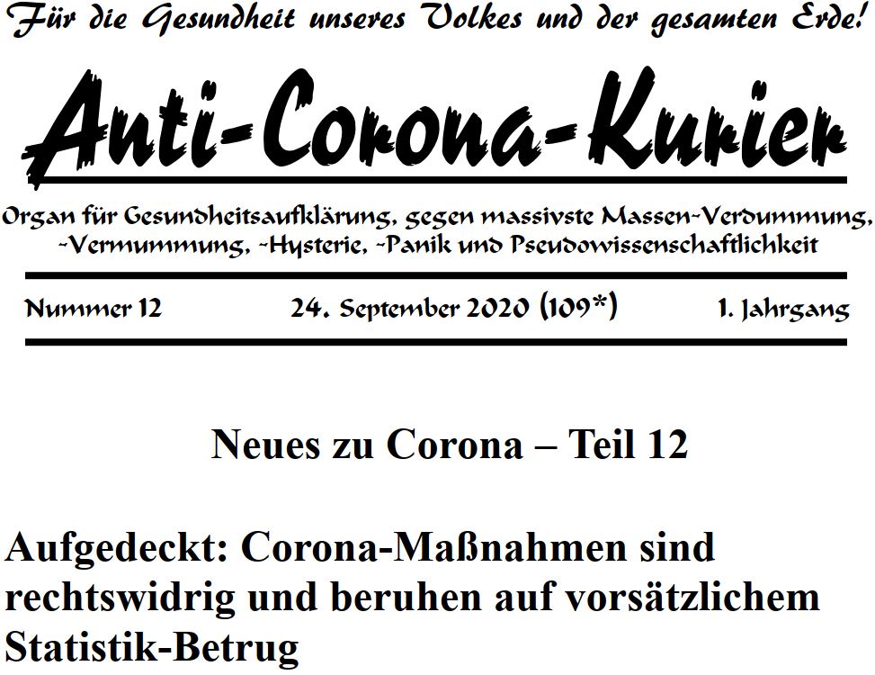 Ein Kommentar | Schlagwörter: 2019-nCoV, Abendschau, Abwehrkraft, AiP, AiP-D, Andreas, Angst, Anti, Anti-Corona-Kurier, Antiimperialismus, Antiimperialistische Plattform, Antiimperialistische Plattform Deutschland, Aufklären, Aufklärung, Ausdruck, ausdruckbar, Ausdrucken, Überleben, Bahner, Barnimer, Bürgerpost, Beate, Berlin, Bevölkerung, Boxer, BRD, Broschüre, BSG, Buchlesung, Bundestag, BV, coron, Corona, CoV-2, Covid, CSU, DDR, Denken, Denkvermögen, Deutsch, Diktatur, EBE, Eberswalde, Eckhard, Ecki, Epidemie, Erreger, Fügener, Führungsoffizier, Fernsehen, Fraktion, Freiheit, gefälscht, Geheilte, Genosse, Genossen, Gerke, Gesetz, Gesetze, gesund, Gesunde, Gesundheit, Gesundung, Handeln, Hoffnung, Hubert, HVA, Hysterie, IG, Immunsystem, Imperialismus, Infektion, interniert, Internierung, Kampf, Kapital, Laurich, Lügen, Leben, Lesung, Lothar, Lothar H. Wieler, Massen, Massenpsychose, Medien, Menschenverachtung, Metall, MfS, Mindestabstand, Mundschutz, Nation, Nord-Korea, Nordkorea, Notstand, Notstandsbefehl, Pandemie, Parlament, Patienten, Politik, Politiker, Pressekonferenz, Prof., Prof. Dr. Lothar H. Wieler, Psychose, Psychoterror, Pyongyang, Regierung, Regime, Revolution, RKI, Robert-Koch-Institut, RT, SARS, SARS-CoV-2, Satire, Schrammelecke, Schrammelmann, Schrecken, Sicherheitskräfte, Souveränität, Sozialismus, Spaßgesellschaft, Sport, Sportler, Stasi, Statistik, Steinfurth, System, Terror, Tochter, Unabhängigkeit, Vaterland, Verordnungen, Verschwörung, Volk, Volksmassen, Wahrheit, Weltregierung, weltweit, Wende, Westaufklärung, Wieler, Wissenschaft, Zuschauer | Veröffentlicht inAgitprop, Analyse, Bei Freunden gefunden, BRD, Europa, Gesellschaft, Korea, Meldungen, Nachrichten