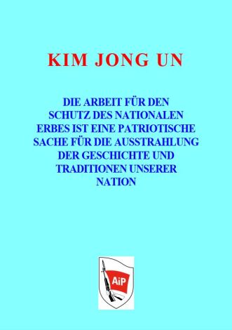 Aus Anlass des 4. Jahrestages der Veröffentlichung des Gesprächs des geliebten Genossen KIM JONG UN Die Arbeit für den Schutz des nationalen Erbes ist eine patriotische Sache für die Ausstrahlung der Geschichte und Traditionen unserer Nation geben wir dieses bedeutsame Werk in Broschüre heraus.