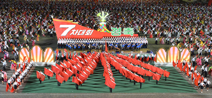 Ein großartiges Finale boten die Bewohner Pyongyangs den Gästen des 7. Parteitages der Partei der Arbeit Koreas (PdAK) in Anwesenheit des verehrten Genossen Kim Jong Un am 10. Mai.