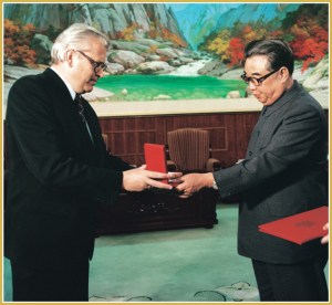 KIM IL SUNG wird von Hermann Schwiesau, Botschafter der DDR in der DVRK der Orden Karl Marx, höchster Orden Deutschlands, verliehen