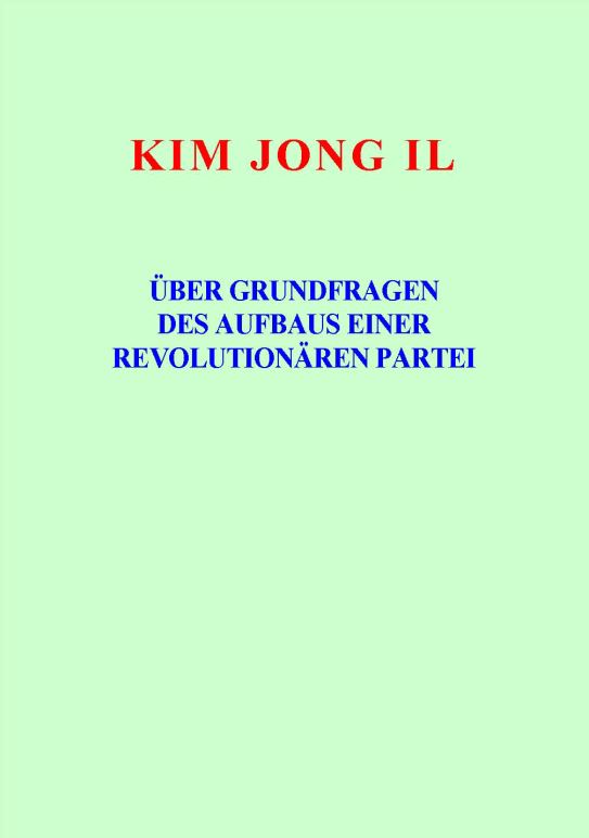 Genossen KIM JONG IL vor. In diesem Werk sind die Grundlagen zum Aufbau einer wahrhaft revolutionären Partei in klaren Worten eindringlich dargestellt. Ebenso werden der Aufbau der sozialistischen Parteien der Welt und die internationale Solidarität und Geschlossenheit treffend analysiert. Wir empfehlen dieses historische Werk zum intensiven Studium und auch durchaus zur Selbstreflexion und Diskussion. Es kann hier heruntergeladen werden.