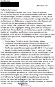 Die gegenwärtige Analyse der Verhältnisse auf der Koreanischen Halbinsel beweisen an Hand dieser Schrift (s. u.), dass Genosse Dieter in der Lage ist, die Juche-Ideologie des Großen Führers Genossen KIM IL SUNG schöpferisch auf die Gegenwart anzuwenden, und damit beweist, dass diese auch nach Jahrzehnten ein zuverlässiger Kompass ist, weil sie universell gültig ist und auch auf jede neue Situation Antworten gibt und damit den Sektierern und Dogmatikern in der deutschen Arbeiter- und Volksbewegung eine schallende Ohrfeige verpasst.