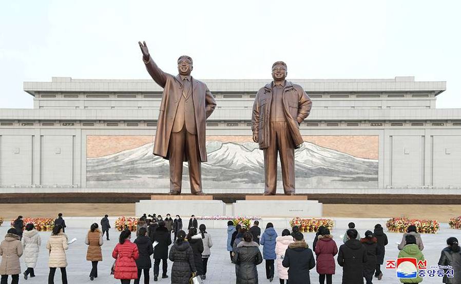 Vor den Bronzestatuen von KIM IL SUNG und KIM JONG IL wurden in Namen der Partei-, der Macht- und der bewaffneten Organe, der Massenorganisationen, der Ministerien, der zentralen Organe, der Truppen der KVA und für Öffentliche Sicherheit, der Institutionen, Fabriken, Betrieben und Hochschulen aller Ebene in der Stadt Pyongyang Blumenkörben und -sträuße niedergelegt.