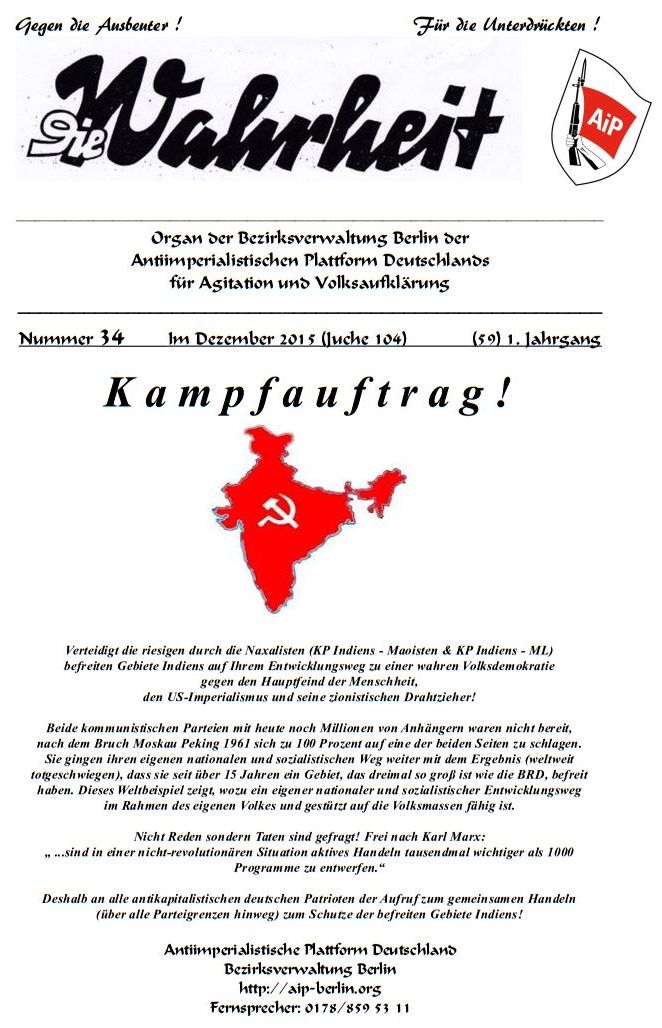 Hinterlasse einen Kommentar | Schlagwörter: 34, Anti-zionismus, Antizionismus, Die Wahrheit, Die Wahrheit 34, Die Wahrheit Nr. 34, Drahtzieher, Indien, Karl Marx, KP Indiens, KP Indiens - ML, KP Indiens Maoisten, lies Die Wahrheit, Marx, Naxalisten, Patriot, Patrioten, patriotisch, Patriotismus, Sozialismus, US-Imperialismus, US-Imperialisten, Volksdemokratie, Volksmassen, Wahrheit, Wahrheit 34, Wahrheit Nr. 34, Willst du Klarheit, Willst du Klarheit – lies „Die Wahrheit“, Zionismus, Zionisten | Veröffentlicht inAgitprop, Asien, Geopolitik, Gesellschaft, Imperialismus, Meldungen, Nachrichten, Willst du Klarheit – lies „Die Wahrheit“