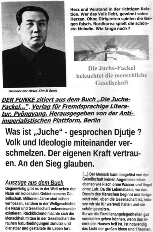 Die DKP, die es als solche eigentlich gar nicht gibt, weil zwischen Ost und West immer noch eine riesige Kluft ist, steht vor der Entscheidung, auf welcher Seite sie nun stehen will. Dass das erwähnte Buch (s. o.) sowie auch völlig sachliche und anständige Artikel (z. B. über Rudolf Herrnstadt, die Verteidigung von Diether Dehm [dem berühmten Schlagertexter] wegen der Einstellung des „Terroristen“ Christian Klar im Parteiapparat der Linken) in der „bösen“ National✠Zeitung erscheinen müssen, ist eine schallende Ohrfeige für die sog. Linke! Aber diese Tatsache beweist auch die Richtigkeit der Aussagen des Genossen Karl Marx aus dem Jahre 1852, dass auch reaktionäre Kräfte auf Grund der gesellschaftlichen Entwicklung lernfähig sein können.