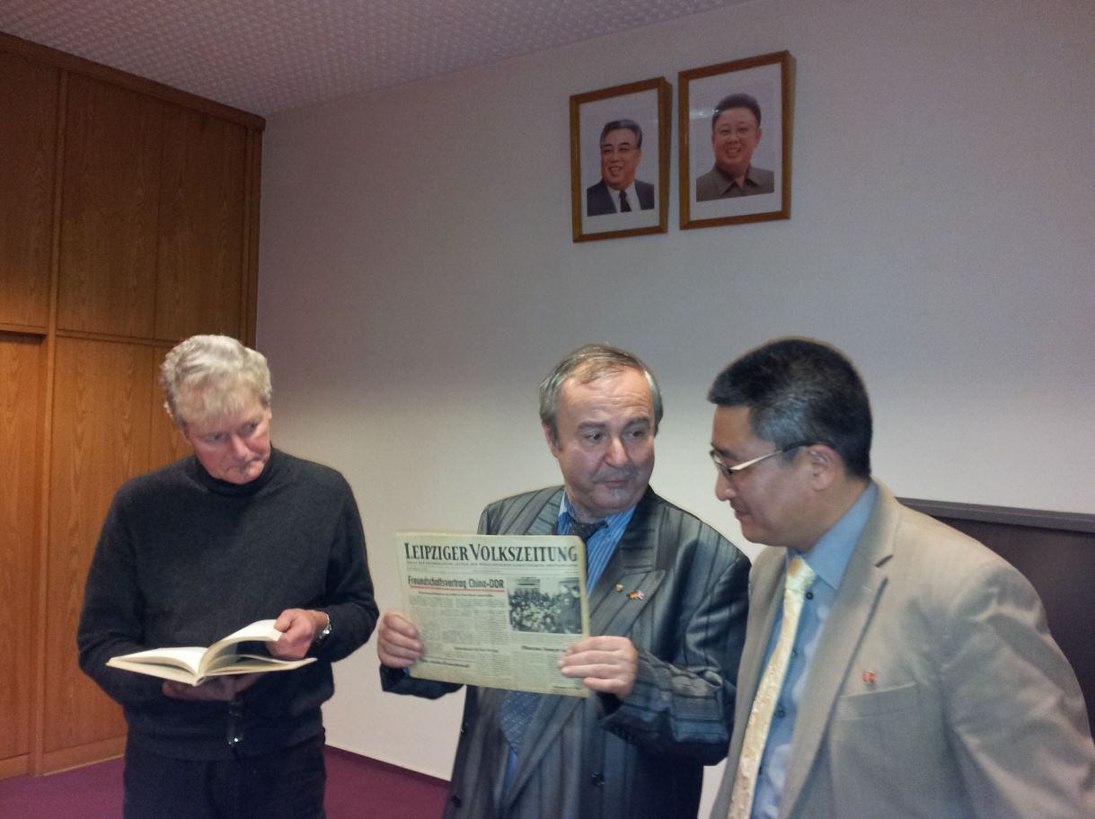 Am Freitag, den 18.11.2016, fand auf Einladung der Botschaft der DVR Korea in der BRD ein Empfang zum Austausch der Einschätzung der aktuellen Weltlage statt. Die Delegation der Antiimperialistischen Plattform Deutschland (AiP-D) stand unter Leitung von unserem Genossen Michael Koth, während die Delegation der Organsiation Mütter gegen den Krieg Berlin-Brandenburg unter der Leitung der verdienten Schriftstellerin und Völkerkundlerin Genossin Brigitte Queck stand.