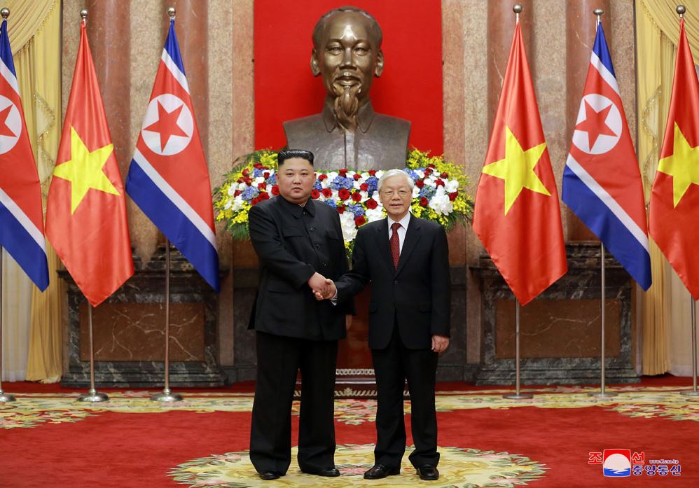 Der hochverehrte Oberste Führer Genosse KIM JONG UN, Vorsitzender der PdAK, Vorsitzender des Komitees für Staatsangelegenheiten der DVR Korea und Oberster Befehlshaber der KVA, traf am 1. März nachmittags im Präsidentenpalast Nguyễn Phú Trọng, Generalsekretär des ZK der Kommunistischen Partei Vietnams und Präsident der Sozialistischen Republik Vietnam.