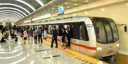 Rekonstruierte U-Bahnstation Sungri in Pyongyang mit neuem U-Bahnzug