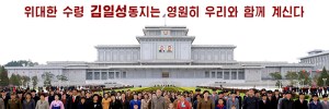 Der Sonnenpalast Kumsusan, wo der Präsident KIM IL SUNG und der Heerführer KIM JONG IL, Gründer unserer großen Partei und unseres starken Staates, deren Entwickler, Väter der Nation und Heiliger der Revolution in Gestalt wie in ihren Lebzeiten weilen, war von einer majestätischen Atmosphäre erfüllt.