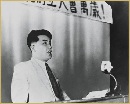 Kim Il Sung bei der Rede auf dem Gründungsparteitag der Partei der Arbeit