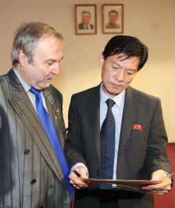 Ein weiterer wichtiger Redebeitrag kam von unserem neuen Abteilungsleiter für Behinderte und Glaubensfragen. Er führte aus, dass in keinem anderen Land der Erde außer der DVR Korea und auch in keiner zurückliegenden Geschichtsepoche behinderte Menschen (egal welches schlimme Schicksal sie auch getroffen haben möge) dieselben Rechte und Pflichten wie die anderen Angehörigen der Menschengemeinschaft haben. Anhand von einigen sehr guten Beispielen (u. a. Konzert der Behinderten in Pyongyang sowie mehrere Auslandstourneen behinderter Künstler in Norwegen, Großbritannien, Island, Frankreich usw.) erläuterte er als selbst Schwerbehinderter, dass dies für alle Behinderten ein Hoffnungsschimmer im traurigen kapitalistischen Alltag darstellt.