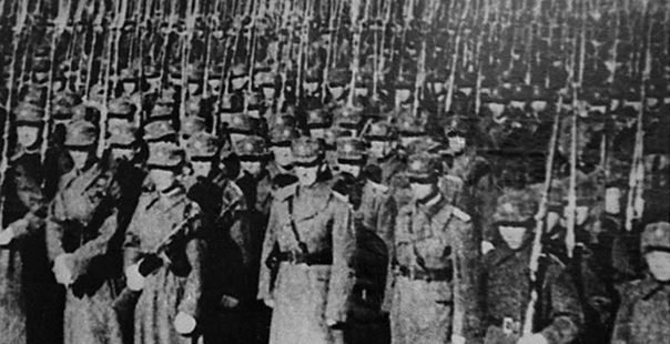 Am 15. August Juche 34 (1945) erfüllte KIM IL SUNG die historische Sache der Befreiung des Vaterlandes, hielt danach den Aufbau der regulären revolutionären Streitmacht für die erstrangige Staatsangelegenheit und setzte dafür die größte Kraft ein.