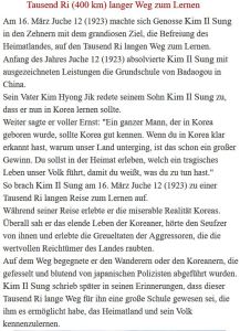 Und gleichzeitig bewunderten sie ihn, weil sie nicht gesehen hatten, dass KIM IL SUNG bei jedem Unterricht so viel notierte, aber er auf allen Fächern und Fragen gut bewandert war.