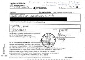 Besuchserlaubnis des Genossen Michael Koth für Erich Mielke