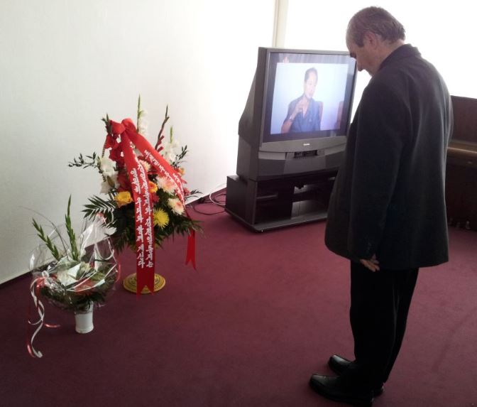 S. E. Genosse Ri Si Hong, zum 67. Jahrestages der Gründung der DVR Korea durch den hochverehrten Genossen Kim Il Sung statt. Zugegen waren offizielle Vertreter der BRD, der Wirtschaft, progressive Kräfte und eine Delegation der AiP-D unter Leitung ihres Vorsitzenden. Wir boten einen Blumenstrauß den Ewigen Führern der DVR Korea, Genossen Kim Il Sung und Kim Jong Il dar. Gleichzeitig überreichten wir eine Grußbotschaft der AiP-D an den hochverehrten Genossen Kim Jong Un.