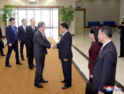 Am 2. April führte in der Kongresshalle Mansudae Sportminister Kim Il Guk das Gespräch mit To Jong Hwan, dem südkoreanischen Minister für Kultur, Sport und Tourismus, der als Leiter des Künstlerensembles der südlichen Seite in Pyongyang weilt, in der landsmännischen Atmosphäre.
