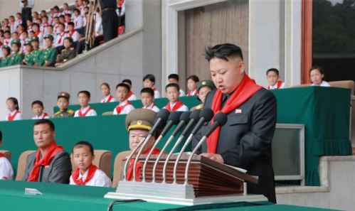 Und er unterstrich, dass alle Mitglieder der KOK die Sonnenfahne von Kim Il Sung und Kim Jong Il vor der KOK-Fahne wehen lassen und sich zu Stützpfeilern des starken und aufblühenden Koreas, die dem Marschall treu sind, zuverlässig heranwachsen sollten.